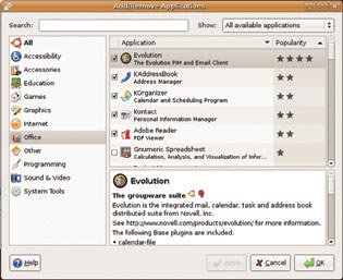Hộp thoại ứng dụng Add/Remove của Ubuntu giúp bạn tải và cài đặt phần mềm miễn phí. |