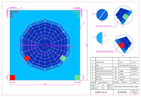 Vùng tự động ở giữa sân thi đấu, hình thập giác đều, sơn màu xanh nước biển (Blue). Vùng tự động được bao quanh bởi tường gỗ cao 100 mm so với mặt sàn, dày 30 mm. (Chi tiết xem hình vẽ).
