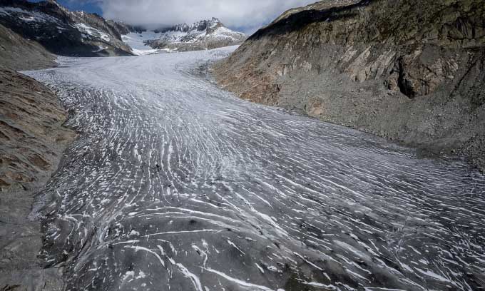 Sông băng Rhone ở dãy Alps, Thụy Sĩ, ngày 30/9. (Ảnh: Fabrice Coffrini/AFP).