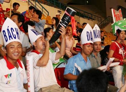 CĐV ĐH Bách khoa Đà Nẵng hân hoan với chiến thắng của đội nhà (Ảnh: Việt Dũng)