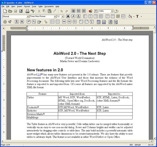 II) Phần mềm thứ hai thay thế Office 2003 nữa là Abiword 2.46 với kích thước cài vào chiếm đến 18MB , có thể tải về từ http://www.abisource.com/ đường truyền thường chậm. Điểm thật đặc biệt nói ngay là hoàn toàn miễn phí nếu bạn sử dụng nó với tư cách cá nhân (personal use only) nhưng nó chỉ thay thế riêng Winword chứ không phải toàn bộ Office 2003.