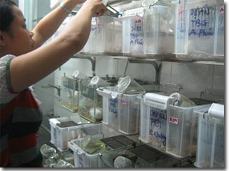 Chuột thí nghiệm được chuyển gien để tạo ra các dòng khác nhau. Trong đó nhiều dòng chuột mang mô hình bệnh tật của con người, để các nhà khoa học nghiên cứu và tìm ra cơ chế bệnh sinh trên người. Trong ảnh: Phòng nuôi chuột thí nghiệm của khoa Công nghệ Sinh học - ĐH Khoa học Tự nhiên TP.HCM. (Ảnh: H.Cát) |