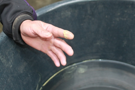 Lớp bột bám lại trên sân nhà một hộ dân sau hai ngày xuất hiện cơn mưa "lạ"