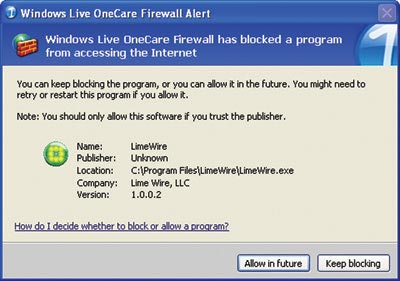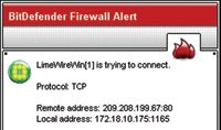 Cảnh báo của Microsoft Firewall về hoạt động LimeWire trông ấn tượng hơn cu3a BitDefender. | |