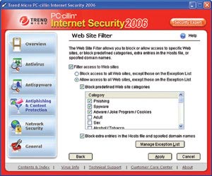 | | Web Site Filter của Trend Micro có khả năng chặn web xấu |