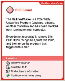 | | McAfee không phân biệt giữa adware và spyware mà gọi chung là PUP |
