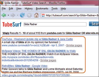 | TubeSurf, dịch vụ tìm kiếm video, kết hợp các kết quả từ Google, MySpace, YouTube và Yahoo. |