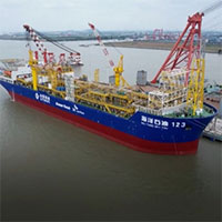 Tàu Haiyang Shiyou 123 xuất xưởng tại Nam Thông, tỉnh Giang Tô, hôm 16/6, đánh dấu cột mốc lớn trong quá trình phát triển của ngành năng lượng Trung Quốc.