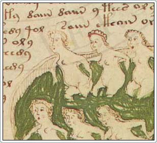Voynich cũng tìm thấy một chương nói về thiên văn - chiêm tinh - vũ trụ học với các vũ trụ tinh tú, mặt trời và mặt trăng, một mặt hoàng đạo khá lạ lùng, những nàng tiên với cái bụng to và gương mặt vô hồn tắm trong các hồ nước xanh được nối với nhau bằng những cái ống tựa như sự sắp xếp bên trong cơ thể một sinh vật...
