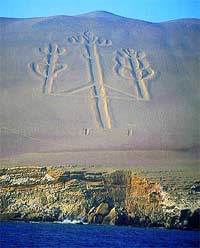 Tại vùng vịnh Bixơka phía nam thủ đô Lima của Pêru có một bức tường đá đỏ cao 820 thước Anh do con người xây dựng nên. Trên bức tường đó có khắc một bức họa hình cái kích ba chĩa hoặc cái chân nến ba ngọn. Mỗi nhánh kích ba chĩa rộng 13 thước Anh, được ghép bằng những viên đá óng ánh màu lân tinh trắng và cứng như đá hoa cương và được chạm khắc tinh xảo. Nếu ngày nay không bị đất cát vùi lấp thì nó vẫn phát ra ánh sáng lóa mắt.