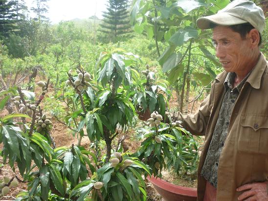 Anh Bùi Văn Sang, chủ nhân vườn hoa đào Mười Lời trên đường Lê Hồng Phong (Đà Lạt) đang sở hữu 10 gốc đào lạ rất đặc biệt. Những cây đào này ra quả thành từng chùm trên ngọn cành. Có chùm lên tới 19 quả, quả có hình dáng giống quả đào thường.