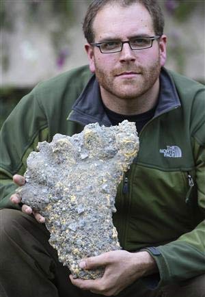 Josh Gates cầm trên tay bằng chứng về “dấu chân người tuyết” ở Nepal. (Ảnh: Reuters) |