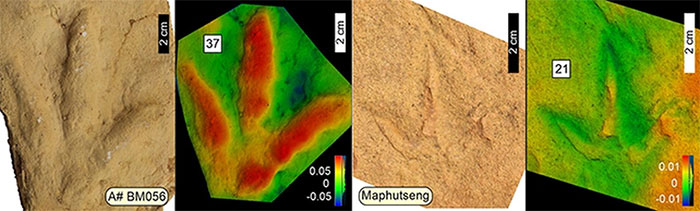 Được biết, trong số hóa thạch lấy từ 4 điểm riêng biệt của khu vực, các nhà nghiên cứu xác định 2 loại dấu chân riêng biệt.