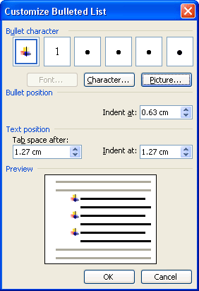 - Nút Picture… Chọn lại ảnh làm ký tự đầu dòng
