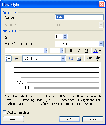- Kích vào nút Add… để tạo thêm kiểu định dạng đánh số thứ tự tự động
