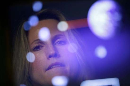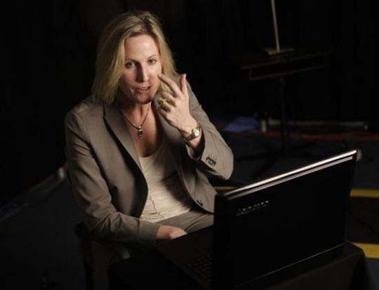 Bà Barbara Barclay thuộc công ty Thụy Điển Tobii Technology Inc. đang biểu diễn việc dùng ánh
