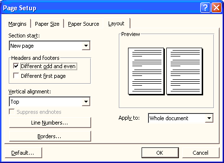 v Thiết lập tiêu đề trang, chân trang (header, footer) của trang chẵn riêng, trang lẻ riêng.