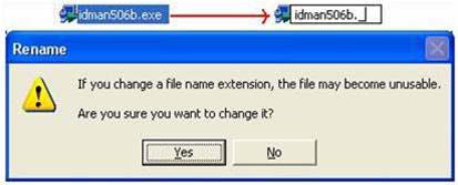 Hãy trở lại địa điểm lưu trữ của tập tin .exe hoặc .bat mà bạn muốn đính kèm e-mail (bản sao của nó), nhắp chuột lên biểu tượng của tập tin này, ấn phím F2, xóa bỏ dãy ký tự .exe hoặc .bat nằm ở cuối tên, thay thế bằng dãy ký tự ._ hoặc một dãy ký tự bất kỳ chủ yếu để đánh lừa Gmail rằng đây không phải là tập tin nằm ngoài danh mục được phép đính kèm rồi nhắp chuột lên nút Yes trong hộp thoại Rename để tiếp tục.