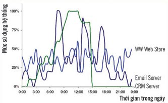 Hình 3. Các server ảo có đỉnh tải ở những thời điểm khác nhau |
