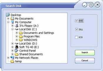 Ngoài ra nếu không biết rõ tập tin nào có chứa biểu tượng, bạn có thể dùng chức năng tìm kiếm của chương trình: vào menu File > Open Folder và chỉ định thư mục cần tìm, chọn định dạng (EXE, DLL, ICO) và nhấn nút Search.