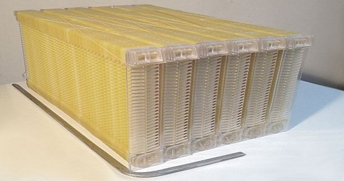 Những lỗ tổ ong hình lục giác giống như thật được chế tạo và đặt trong tổ. Sau khi đã tổng hơp xong mật ong tự nhiên, các chú ong sẽ điền đầy mật vào những lỗ tổ ong này. Mật ong chảy từ các lỗ qua ống dẫn và đi vào lọ đựng mật ong đặt bên ngoài.