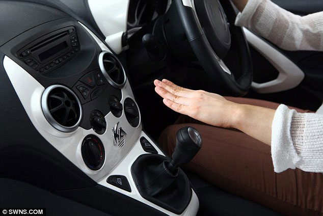 Người lái điều khiển hệ thống điều hòa nhiệt độ bằng cách đưa tay phải lên hoặc xuống cần số. Ở gần đó có một thiết bị cảm ứng gắn với máy tính để nhận dạng cử chỉ.