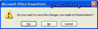 Nếu bạn chưa lưu file thì khi đóng sẽ xuất hiện một hộp thoại hỏi có muốn lưu bản trình chiếu trước khi đóng hay không?