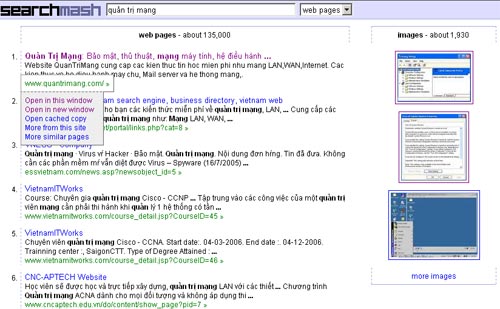 Giao diện màn hình kết quả tìm kiếm trên trang SearchMash