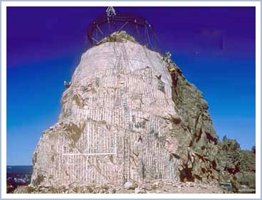 Nhà điêu khắc huyền thoại Korczak Ziolkowski - người khởi xướng dự án và kêu gọi lòng hảo tâm từ các quỹ từ thiện tư - đã chọn hình tượng anh hùng dân tộc Crazy Horse làm nguồn cảm hứng sáng tạo công trình khắc núi hùng vĩ. Sau hơn 10 năm miệt mài, cuối cùng gương mặt Crazy Horse đã dần lộ diện.
