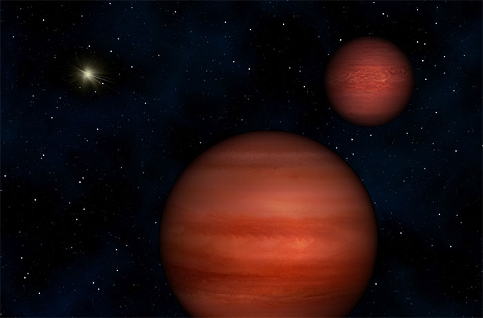 Ảnh đồ họa mô tả một cặp "hành tinh từ hư không" đồng hành với một ngôi sao khác ở phía xa. - (Ảnh: ĐẠI HỌC PENNSYLVANIA).