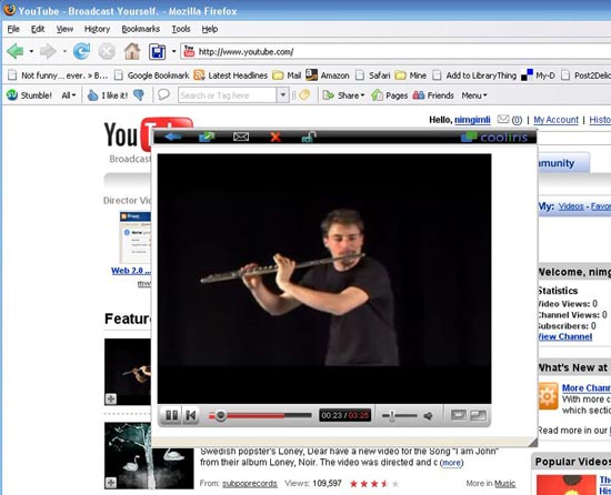 Khung xem trước trên Cooliris Preview của một video trên YouTube