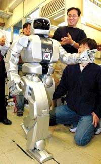 Tổng thống Hàn Quốc Roh Moo Hyun bắt tay một robot (Ảnh từ trang web nước ngòai) |
