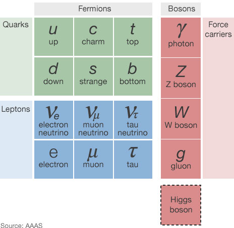 Hạt Higgs Boson trong Bảng các hạt trong Mô hình Chuẩn của Peter Higgs Chuẩn. (Nguồn: AAAS)