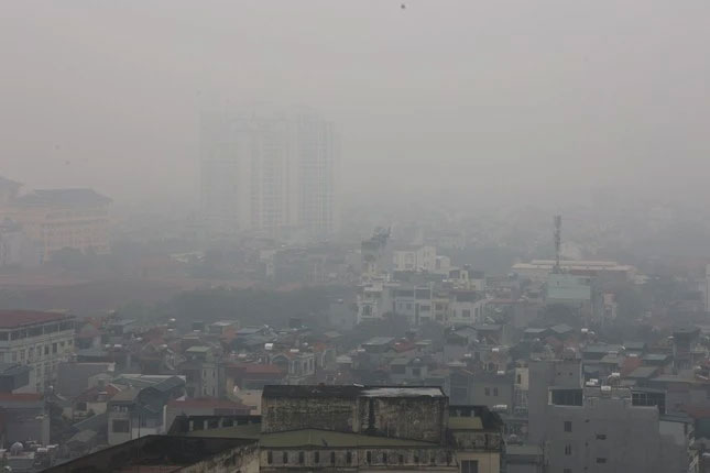 Khu vực tòa nhà cao tầng ở Hà Nội mù mịt. (Ảnh: Khoa học và Đời sống).