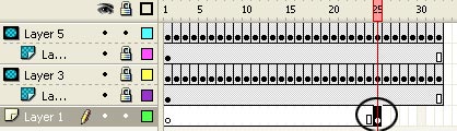 Trở lại layer 1, bỏ ẩn, bỏ khóa và sử dụng phương pháp kéo thả để chuyển frame đầu tin tới frame 25. Xem hình dưới