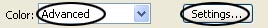 Sau đó, chọn frame 45 và nhấn phím F6. Trở lại frame 25, lấy công cụ Selection Tool (V), kích một lần lên bức tranh để chọn nó, vào Properties Panel ở phía dưới màn hình. Ở phần bên phải, bạn sẽ thấy phần Color menu. Chọn Advanced, kích vào Settings và chọn theo lựa chọn ảnh dưới.