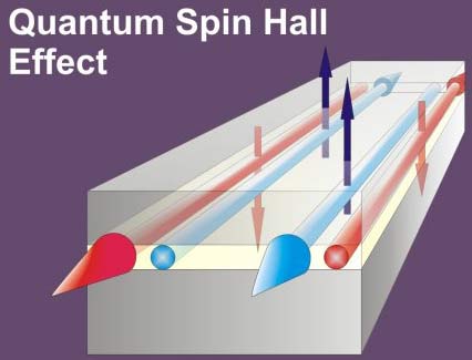 Các nhà vật lý Đức và Mỹ vừa lần đầu tiên quan sát thấy những dấu hiệu đầu tiên về một hiện tượng chất rắn bất thường gọi là Hiệu ứng Hall spin lượng tử (Quantum spin Hall effect - QSHE), trong đó dòng điện tử phân cực spin ở tại rìa của chất cách điện có thể trở thành điện tử dẫn điện.