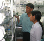 PGS-TS Bùi Văn Lệ, đang chỉ dẫn cho sinh viên cách nhân giống loài hoa tử linh lan (Ảnh: NLĐ) |