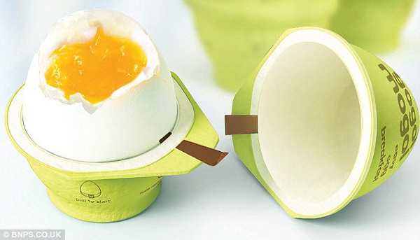 Đây là sáng tạo của nhóm KIAN - một đội các nhà sáng chế người Nga. Không cần tới một nồi nước và không cần phải đợi lâu, chiếc hộp làm bằng các-tông thông minh có thể làm chín hoàn toàn quả trứng bên trong.