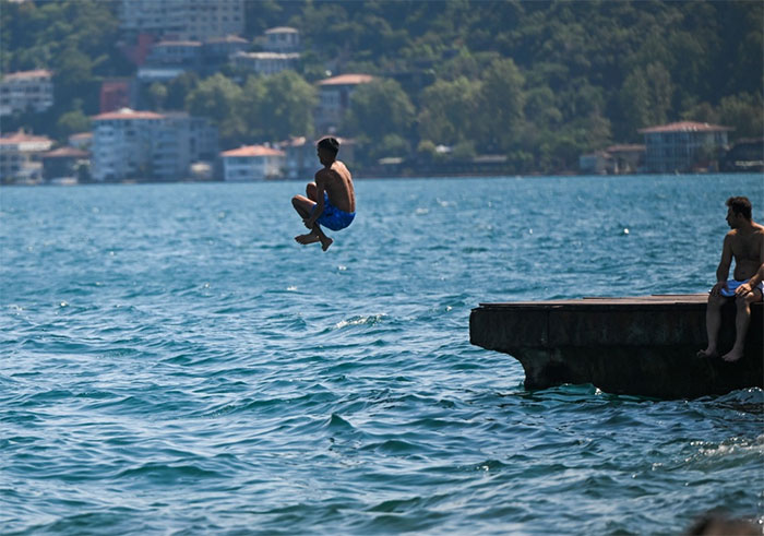Người dân tắm biển tránh nắng nóng tại Istanbul, Thổ Nhĩ Kỳ, ngày 18/7. (Ảnh: THX).