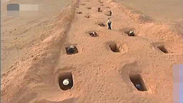 Các ngôi mộ cổ được tìm thấy trong nghĩa trang Dương Hải ở gần thành phố Turfan ở Khu tự trị Tân Cương, Trung Quốc. (Ảnh: Sohu)