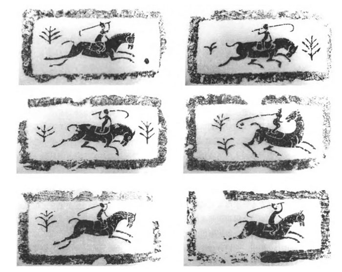 Hình ảnh trò chơi cưỡi ngựa đánh bóng được người xưa khắc họa trên những bức tranh thời xưa. (Ảnh: ABC).