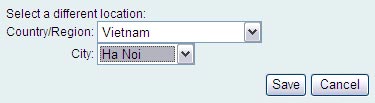 Mục Select a different location, trong Country/Region, chọn quốc gia là Vietnam, còn City là tên thành phố gần nơi ở của bạn. Nhấn Save để lưu lại.