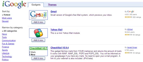 iGoogle sẽ tự động liệt kê các dịch vụ mail phổ biến nhất hiện nay, nếu muốn thêm một dịch vụ khác bạn nhấn vào Add stuff.