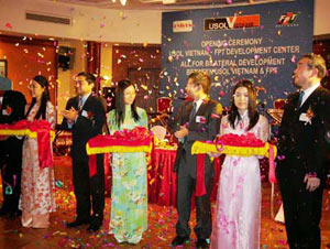 Cắt băng khai trương Trung tâm phát triển phần mềm USOL - FPT Software (Ảnh C.T) |