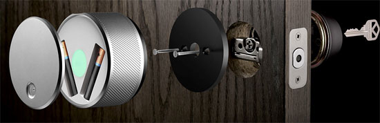 Loại ổ khóa này mang tên August, do một công ty Mỹ phát triển, có giá 199USD. Khóa August làm bằng nhôm chịu lực và có thể được gắn vào ổ khóa chìm hiện tại của cửa nhà chỉ trong vòng 10 phút. Điều này có nghĩa chủ nhà vẫn có thể mở cửa bằng cách dùng chìa khóa như bình thường. Nó chạy bằng 2 cục pin AA và sẽ phát tín hiệu báo cho chủ nhà biết khi gần hết pin. Một khi đã lắp đặt và kích hoạt, khóa August có thể được điều khiển trực tuyến thông qua một ứng dụng điện thoại di động.