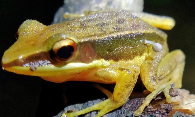 Nhà tự nhiên học Chinmay Maliye và Lohit YT, chuyên gia về đất ngập nước tại Tổ chức Quốc tế về Bảo tồn Thiên nhiên Ấn Độ (WWF Ấn Độ), phát hiện trường hợp đầu tiên về một cây nấm mọc trên cơ thể ếch sống, IFL Science hôm 13/2 đưa tin. Con ếch lưng vàng trung bình Rao (Indosylvirana intermedia), với cây nấm nhỏ màu xám mọc ra từ hông trái, đậu trên cành cây trong một chiếc ao nhỏ ở chân dãy núi Kudremukha, Ấn Độ. Nghiên cứu mới xuất bản trên tạp chí Reptiles & Amphibians.