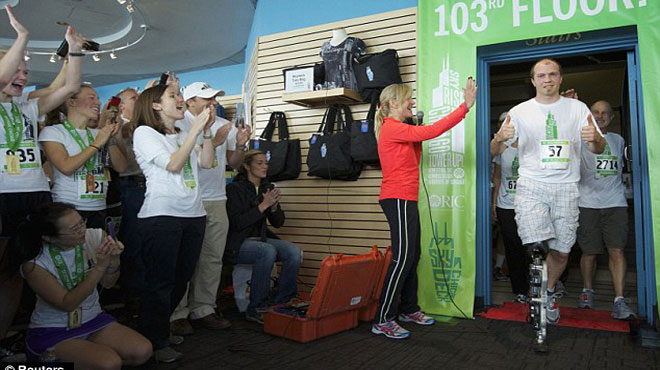 Anh chinh phục tòa nhà chọc trời trong vòng 45 phút. Mục đích của sự kiện này là gây quỹ cho Viện Phục hồi chức năng Chicago.