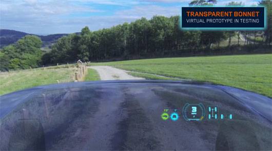 Bên cạnh việc hỗ trợ quan sát mặt đường bên dưới nắp ca-pô hệ thống Transparent Hood còn kết hợp với hệ thống HUD để hiển thị các thông tin thiết yếu cho người lái như tốc độ, chế độ lái, chế độ dẫn động, vị trí của vô-lăng, độ dốc mặt đường, góc lăn ngang.v.v... Công nghệ hiển thị hoàn toàn mới này sẽ được giới thiệu lần đầu tiên trên thế giới tại triển lãm ô tô quốc tế New York năm nay cùng với mẫu xe Land Rover Discovery Vision Concept.