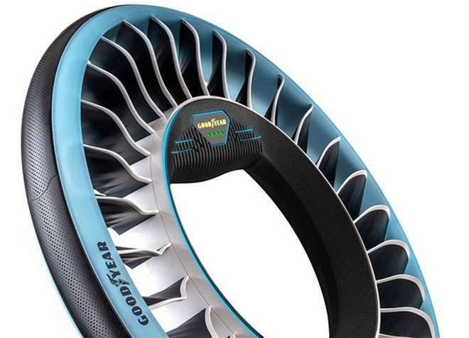 Ý tưởng lốp xe Aero của hãng Goodyear giúp nó có thể chịu được trọng tải của xe khi bạn lái dưới mặt đất. Tuy nhiên nó có thể nghiêng theo chiều ngang và các lan hoa của bánh xe có thể tạo ra lực nâng cho chiếc xe bay lên không trung.